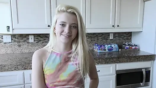 Azgın üvey kız kardeş River Lynn bulaşık yıkamayı önlemek için üvey erkek kardeşinin şişman yarağıyla sert seks yapıyor